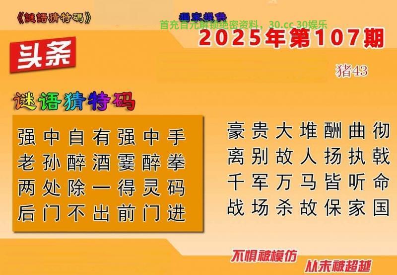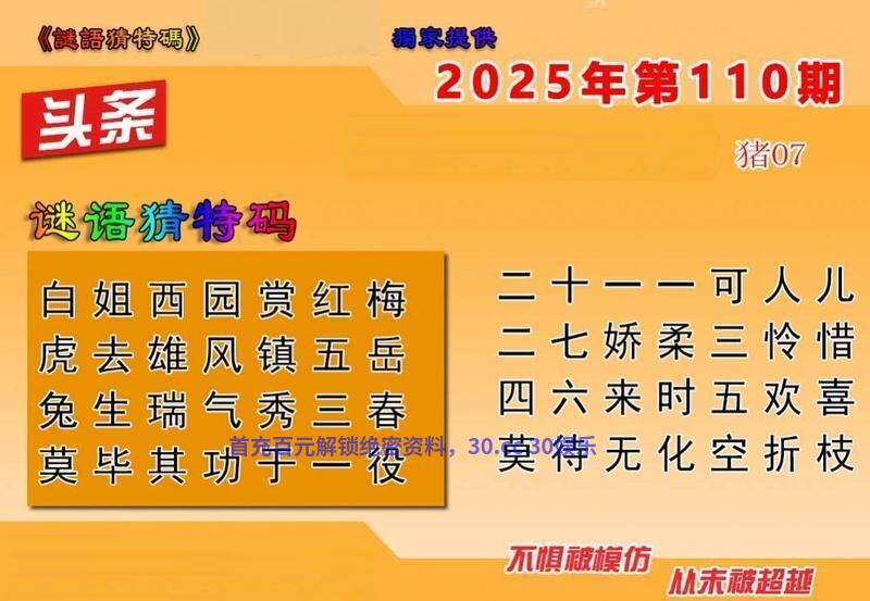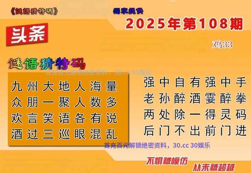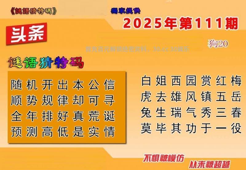 111期六合头条【解迷语猜特码】 随机开出本公信 顺势规律却可寻 全年排好真荒诞 预测高低是实情 解译:“鸡”,因“公信”可联想“公鸡”(家禽),且“开”在中文中常与“鸡”关联(如“开市大吉”隐含鸡的吉祥寓意) 九肖:猪猴牛鸡鼠马兔狗虎 六肖:猪猴牛鸡鼠马 |